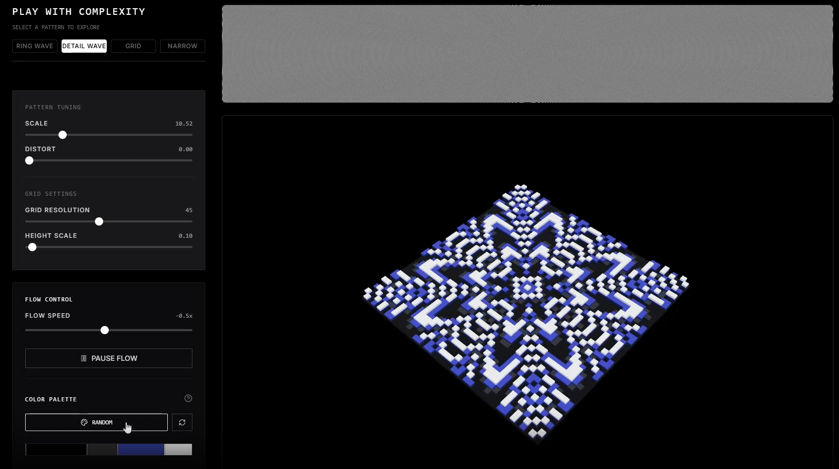 It became 26. This year, I really wanted to make my own work and become a new media artist. I wanted to stop the meaningless tech-flexing, stop developing other people's exhibition ideas. I went back to playing with Geometry Nodes and Shader Nodes in Blender 3D after a long while. I accidentally pushed a parameter to an extreme. The visual pattern that emerged held me. That's how Patternflow: Origin was born.
