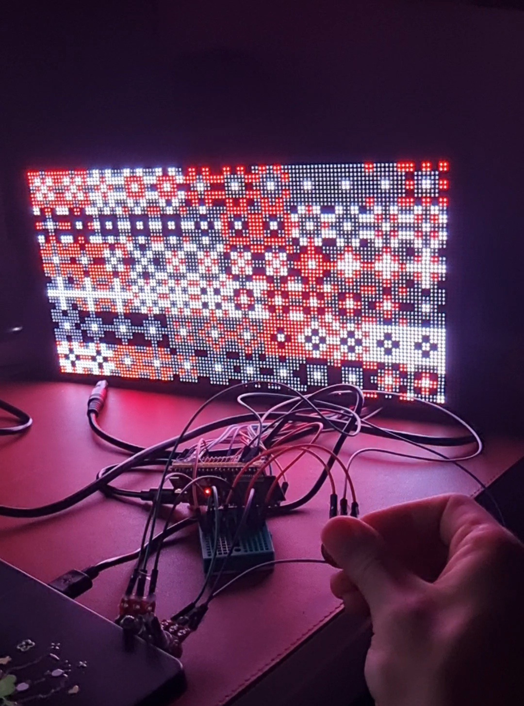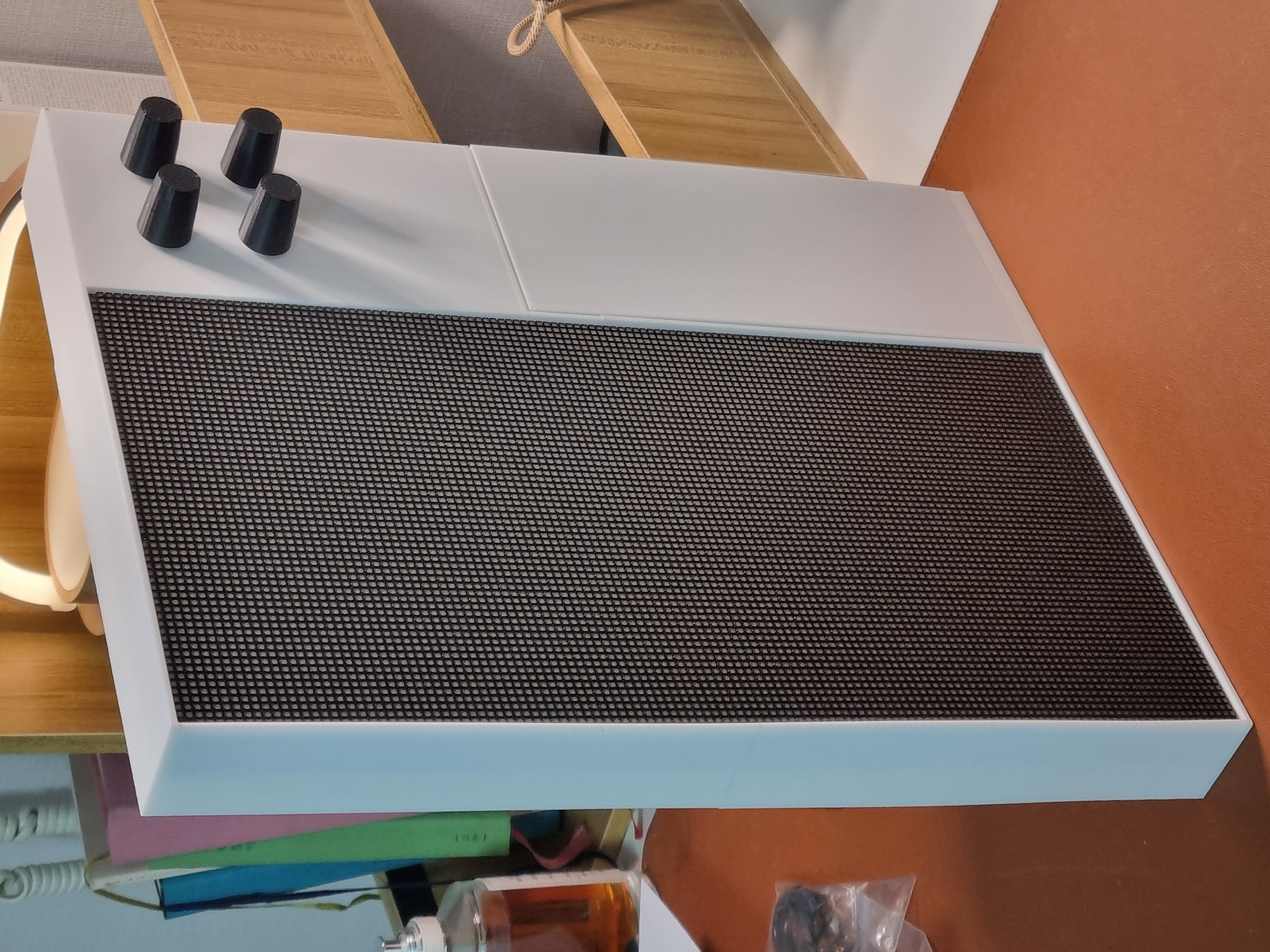 In late March, my younger brother Doyun, who studies electronics, mentioned in passing: "It would be cool if you put Patternflow on an LED matrix." I'd been planning a real interactive exhibition, so I'd already felt the need for some kind of physical interface. But I'd been hoping for projection, or a high-resolution monitor. An LED matrix would be too low-resolution to render the 3D look, so I wasn't drawn to it. Still, when I checked AliExpress, the price was affordable enough that I bought one to test. That's where the turning point began.